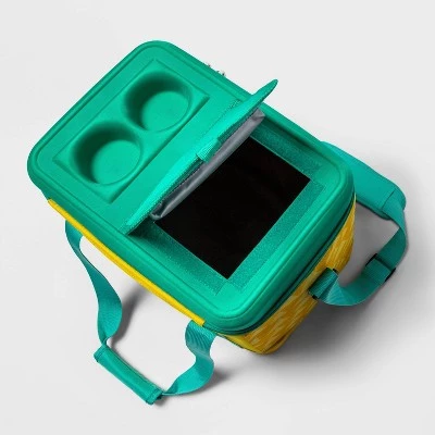 Bring convenience to your next pool party, beach trip or picnic with this 9-Quart Cooler from Sun Squad™. Designed with allover yellow diamond print with a turquoise top and straps for a bright, fun look, this cooler can hold up to 24 beverage cans. It features a cup holder and outside storage pocket for holding extra food and drinks, while the dry storage compartment gives you a safe place to stash your wallet or phone. The leak-proof design keeps any spills contained, and the shoulder strap and carrying handle make transporting the cooler a breeze.