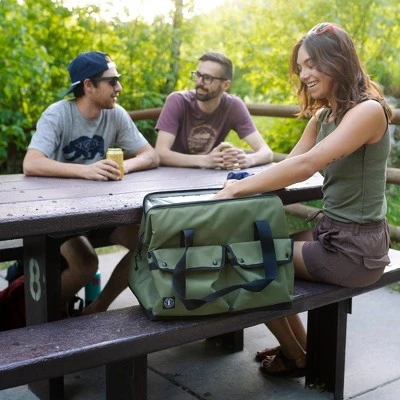 The exterior of the Arctic Zone® Eco Picnic Satchel is made from 100% Repreve® sustainably sourced materials from recycled plastic bottles* and features a wide mouth opening for easy loading. It also includes 2 cargo pockets as well as carry handles/shoulder straps.