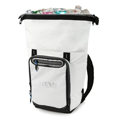 The Titan Deep Freeze® Rolltop Backpack Cooler has a 20 can capacity and keeps ice up to 3 days. The backpack’s versatile design allows you to roll down and clip the top section when you’re packing smaller quantities or use it fully unfolded for extra capacity.