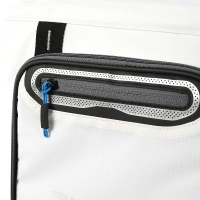 The Rhino-Tech® exterior is water and stain resistant and wipes clean easily. The exterior also includes an insulated front pocket, neoprene handle, a comfortable, padded back panel and adjustable, padded backpack straps.