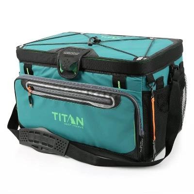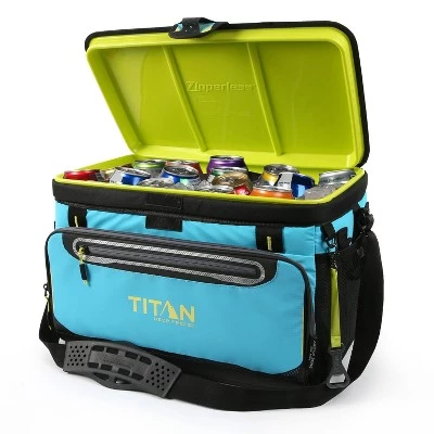 The Titan Deep Freeze 45 Can Zipperless Cooler keeps ice up to 3 days! The exterior includes a patented, “flip-open” Zipperless lid for quick access to food and drinks as well as an insulated front pocket.