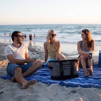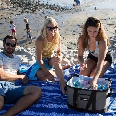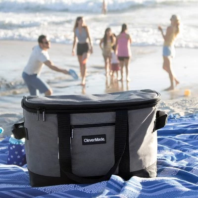 The collapsible CleverMade SnapBasket Cooler is a smart, space-saving solution to simplify any trip. This versatile, soft-sided cooler snaps open with ease and holds 50 cans plus ice. With a leak-proof insulated interior, it is ideal for keeping drinks and food cold everywhere you go. SnapBasket Cooler keeps beverages cold for 36 hours making it the perfect day cooler. It features a zippered front pocket for valuables. Located on the strap is a built-in bottle opener, eliminating the need to worry about packing additional accessories. Measuring 18.25″ L x 12.25″ W x 12″ H, it holds 30 liters (8 gallons) by volume, with a load capacity over 50 pounds. Comfortable, side grip and duffle bag handles make heavy lifting a breeze. This sturdy, soft-sided cooler not only wipes clean, but collapses flat to 3″ for compact storage.