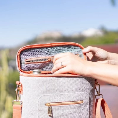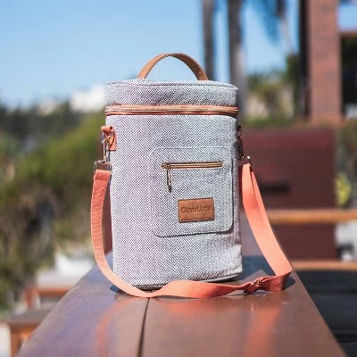 The CleverMade Wine Cooler Tote is the ideal carrier for wine lovers. With room to carry 3 bottles or 6 cans of your favorite beverages, this tote is perfect for small parties, a day at the beach, or a picnic outside. With vegan leather accents and new patterns, this cooler is perfect for happy hours, picnics, or a fun-filled friends night.