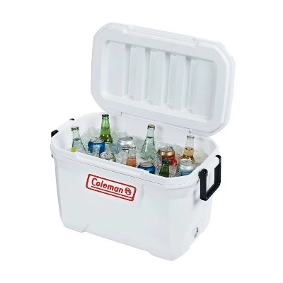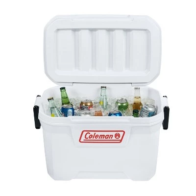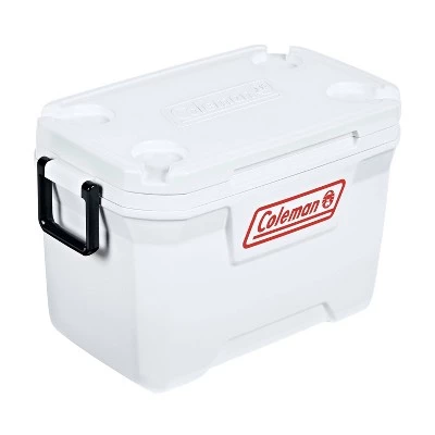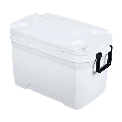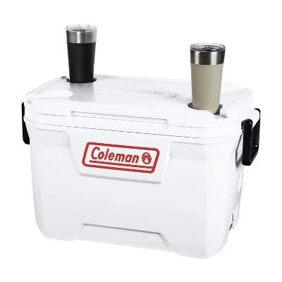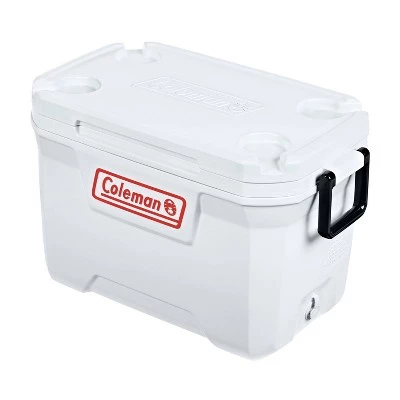 Food and drinks stay chilled longer with the Coleman® 52-Quart Marine Hard Ice Chest Cooler, which Keeps the Ice™ up to 3 days. Carrying a full load? Enjoy easier lifting with the swing-up side handles, then have a seat on the closed lid. Not to worry, cup holders built into the lid will keep your drink close and prevent spills. UVGuard™ coating protects the cooler’s exterior from the sun’s rays to ensure years of use—even in harsh marine environments. With room for up to 80 cans, you’ll easily fit refreshments and the day’s catch on fishing trips.