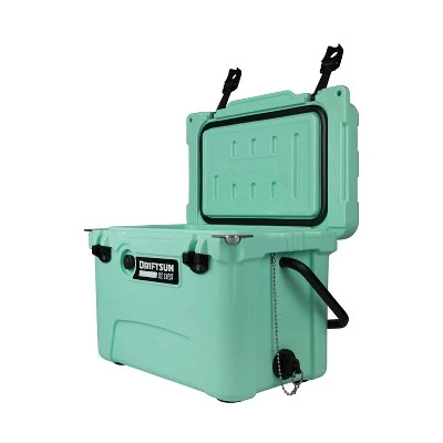 Tailgates. Camping. Outdoor parties. Some events that call for a drink don’t always happen where you can fix your favorite beverage. With the Driftsun Portable 20-Quart Insulated Ice Chest Beverage Cooler, you can enjoy your favorite snacks and drinks wherever you go. Designed to take on-the-go, this portable ice chest is perfect for white water rafting, off-shore fishing, or get-togethers in the backyard. Equipped with 3 inches of commercial-grade insulation and ThermalLock freezer-style gaskets, this cooler keeps contents cold for up to 10 days in a row. No matter what the occasion, store 20 quarts of cold goodness inside this travel ice chest and easily lock to safely secure contents. Crafted from nearly indestructible rotomolded thermoplastic, this beverage cooler withstands the harshest conditions, including bears and other wildlife. The molded tie-down slots and non-slip feet means this cooler is ready for any adventure. Whether you’re going to a beach party, on a weekend hunting trip, or catching the next big fish, the Driftsun Heavy-Duty 20-Quart Insulated Cooler is the companion you want to tag along.