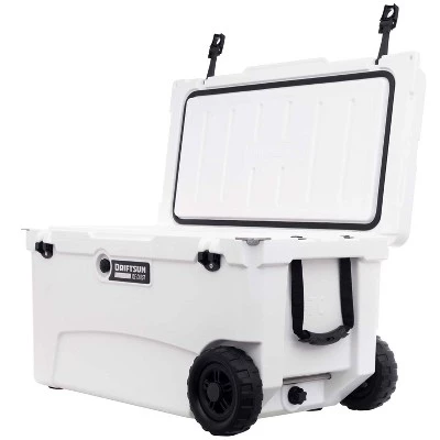 Tailgates, camping, outdoor parties: some events that call for a drink don’t always happen where you can fix your favorite beverage. With the Driftsun Heavy-Duty 70-Quart Portable Insulated Hardside Cooler, you can enjoy your favorite snacks and drinks wherever you go. This portable ice chest is perfect to take on the go whether it’s to the beach, a weekend hunting trip, or the next backyard get-together. Equipped with 3 inches of commercial-grade insulation and ThermalLock freezer-style gaskets, this cooler keeps contents cold for up to 10 days in a row. No matter what the occasion, store 70 quarts of cold goodness inside this travel ice chest and easily lock to safely secure contents. Crafted from UV-resistant, nearly indestructible rotomolded thermoplastic, this beverage cooler can withstand the harshest conditions, including bears and other wildlife. The molded tie-down slots and non-slip feet means this cooler is ready for any adventure. Whether it’s off-shore fishing or having a backyard bar-b-que, the Driftsun Heavy-Duty 70-Quart Insulated Cooler is the perfect addition for any outdoor event.