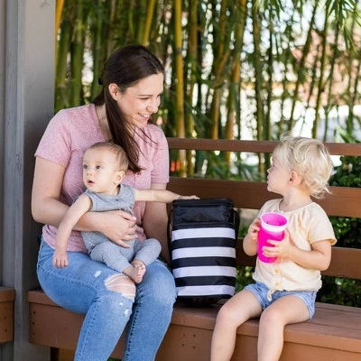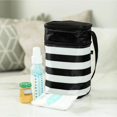 The J.L. Childress fully insulated 6 Bottle Cooler is a leak-proof tote with shoulder strap that’s perfect for a day’s supply of baby’s nutritional needs. This tote features 2 insulated zippered compartments: a bottom that can hold up to 6 standard bottles or 3 bottles and a snack box, and a top compartment that is perfectly sized to hold 3 food jars, utensils, and bibs. The interior lining of the bottom compartment pulls up for easy cleaning to avoid odors and mildew and is PVC, lead and phthalate free. Includes the J.L. Childress non-toxic, freeze-solid, reusable 8oz ice pack, keeping your food and drinks cool for up to 8 hours (in moderate conditions). The 6 Bottle Cooler is also a pumping mama’s best friend – large enough to store a manual or small pump, milk storage bags, ice packs, bottles and more.