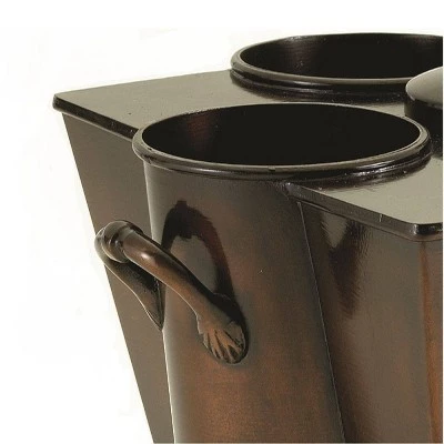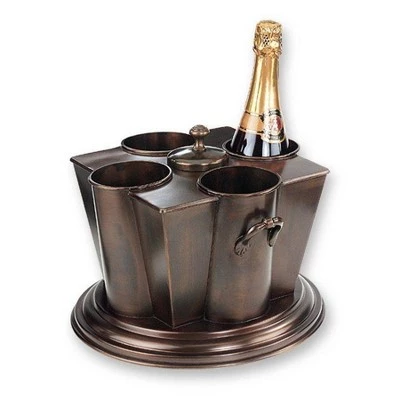 The 4 Bottle Wine Chiller by Old Dutch is the ultimate tool for entertaining in style. This functional work of art is finished in striking Antique Copper and lacquered to resist tarnishing. The wine chiller holds and chills four bottles at once and has a convenient lid to keep ice protected from the elements. This wine chiller is as perfect for grand celebrations as it is for casual brunches on the patio.