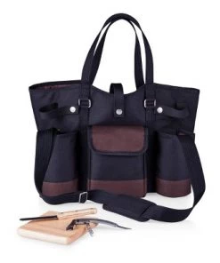 Includes: 1 Wine & Cheese Tote (Polyester, 9.5″ x 4.5″ x 13.6″); 1 Cheese Knife (Stainless Steel, 7.5″ x 0.75″); 1 Corkscrew (Stainless Steel, 4.5″ x 1.5″); 1 Cutting Board (Ash, 6″ x 6″ x 0.75″)