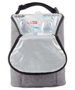 Our insulated bag keeps two bottles warm or cold with included freezer pack. With an insulated interior, it’s also great for keeping sippy cups and snacks chilled for up to four hours.