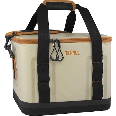 The Thermos Trailsman Can Cooler is available in two sizes to fit 36 cans or 42 cans. Both sizes feature padded carrying handles, a front zippered pocket for extra storage and strong welded seams to prevent leakage. Built for durability and comfort, you can bring your chilled beverages wherever your adventure takes you! Made with 500D polyester with matte TPU coating and 500D polyester lining and shiny TPU coating with an EVA molded bottom. The 36 Can Cooler has adjustable and removable shoulder strap, padded carrying handle, front zippered pocket and metal bottle opener. The 42 Can Cooler has side carrying handles and large front zippered pocket for extra storage.